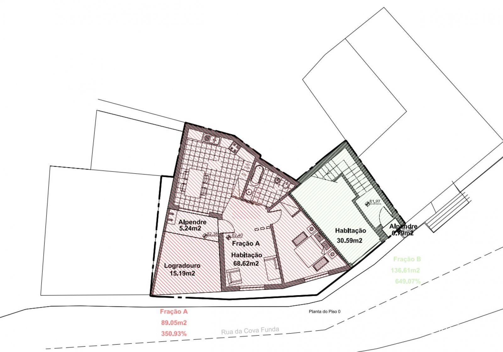 Lote de terreno para construção de dois fogos, com projeto aprovado para um T1 e um T2.